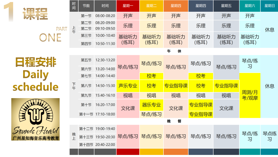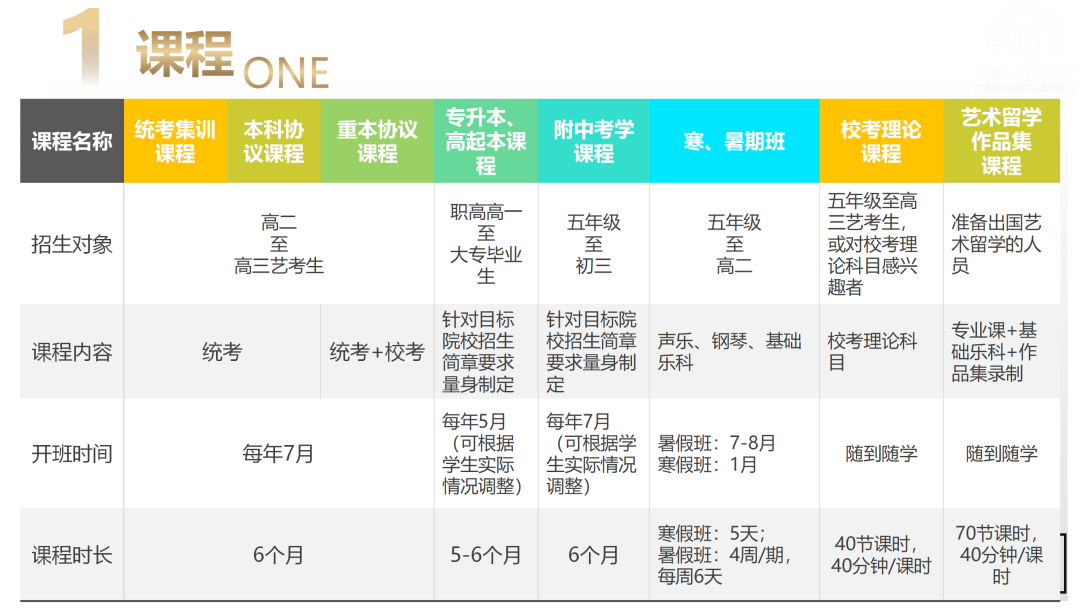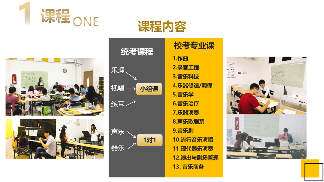系统测试学生的基础乐科和专业课的入学分数,为学生量身定制集训课程。