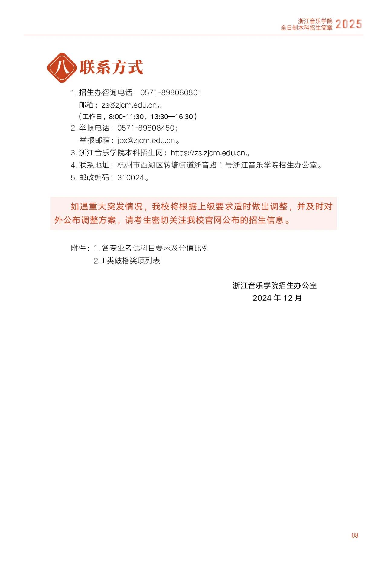 招生简章|浙江音乐学院2025年招生简章