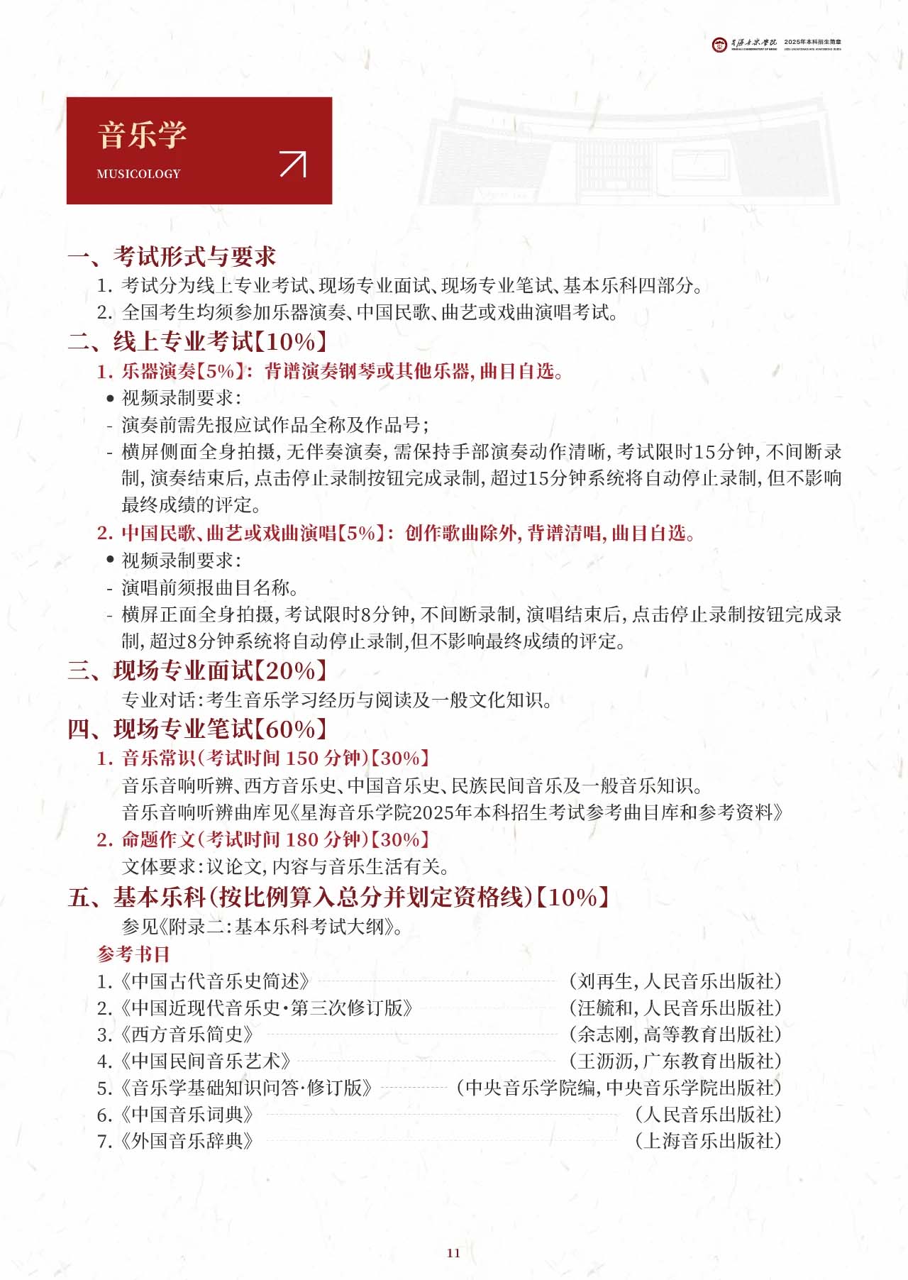 招生简章| 星海音乐学院2025年校考大纲,音科大改革!