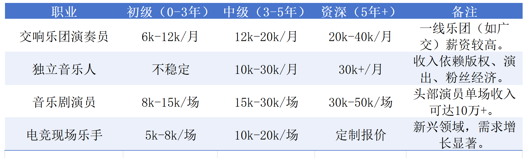 - 线下演出(疫情后复苏,音乐剧/电竞乐手需求反弹)。