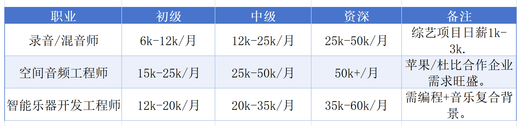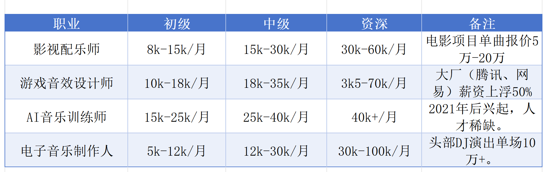 - 游戏/影视配乐:资深人才薪资翻倍(受国产游戏/影视出海驱动)。