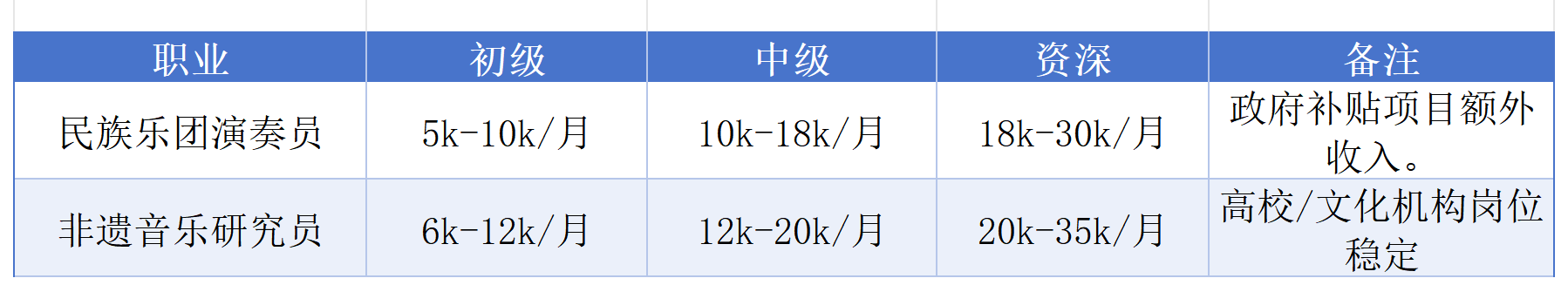 - 职业演奏家(交响乐团、歌剧院、民族乐团)