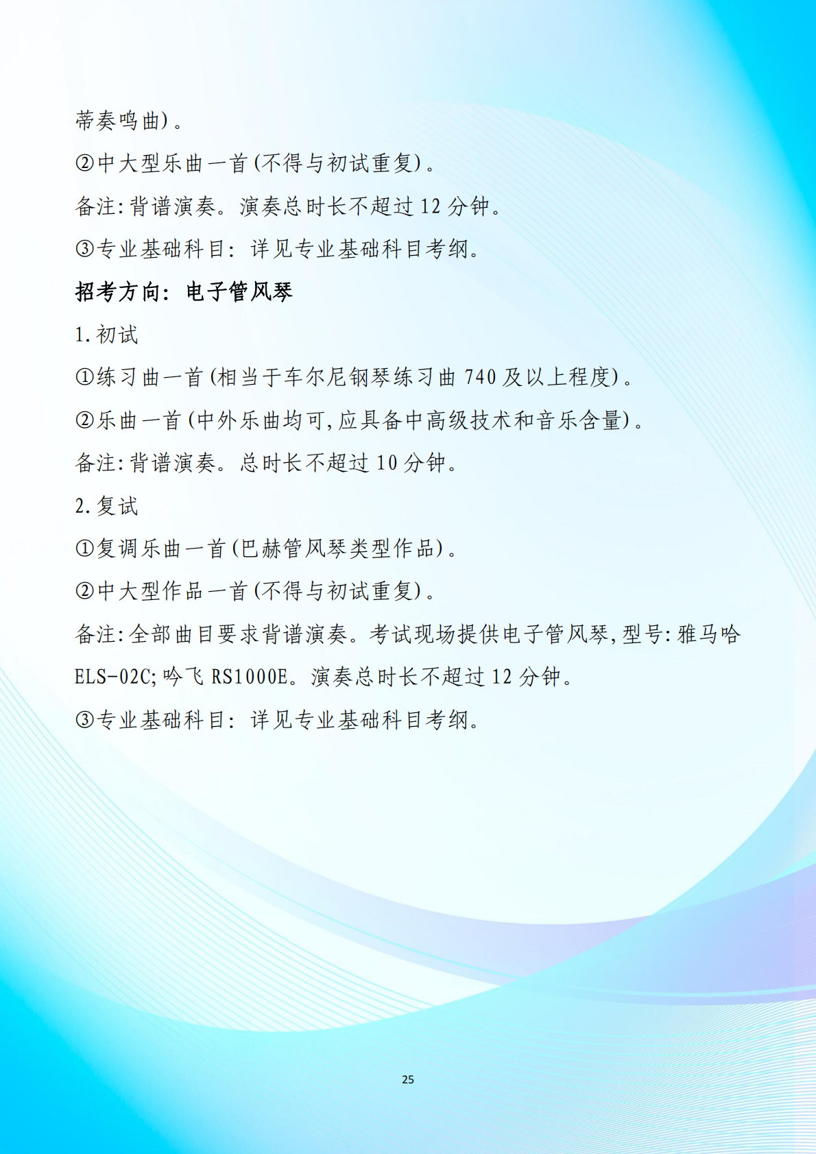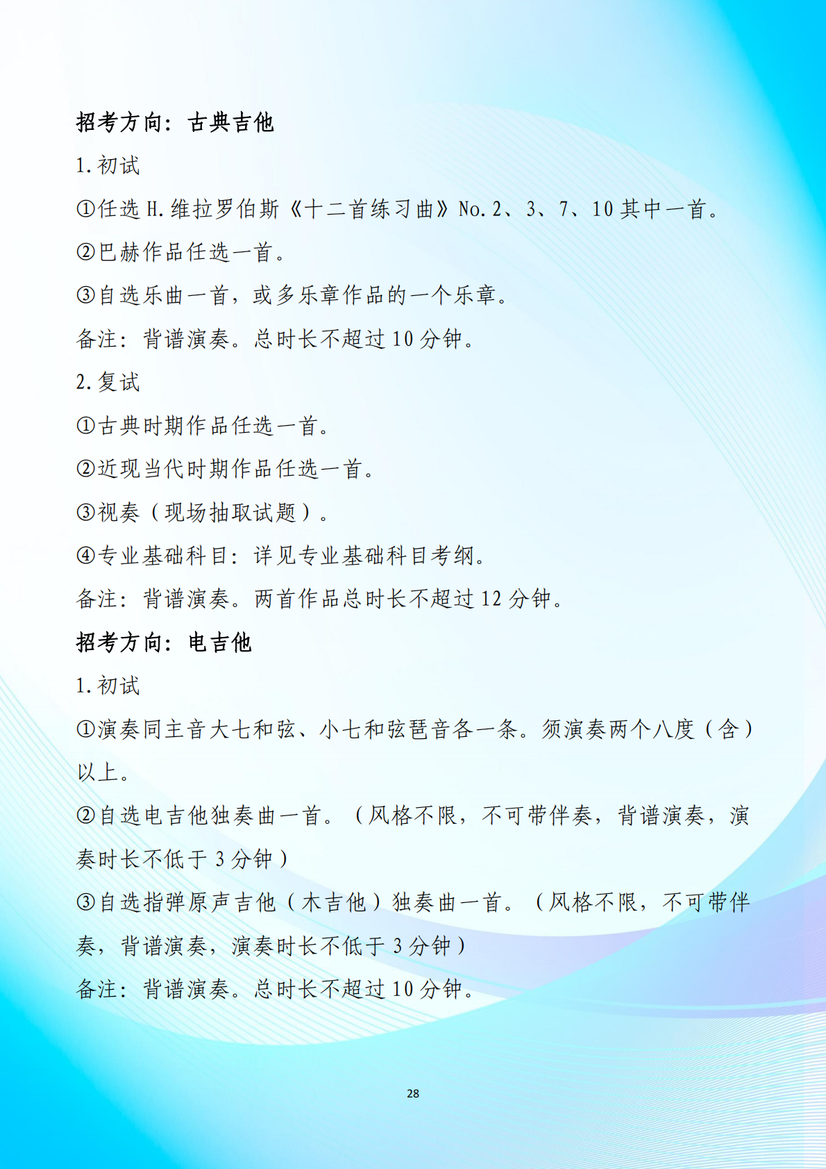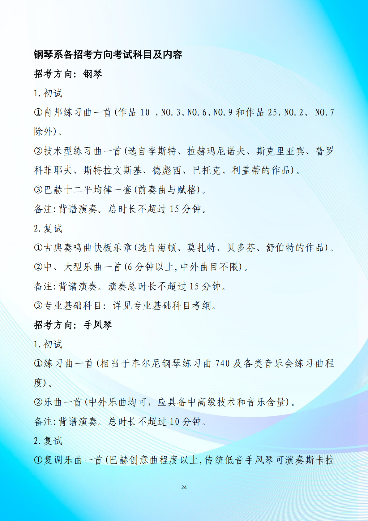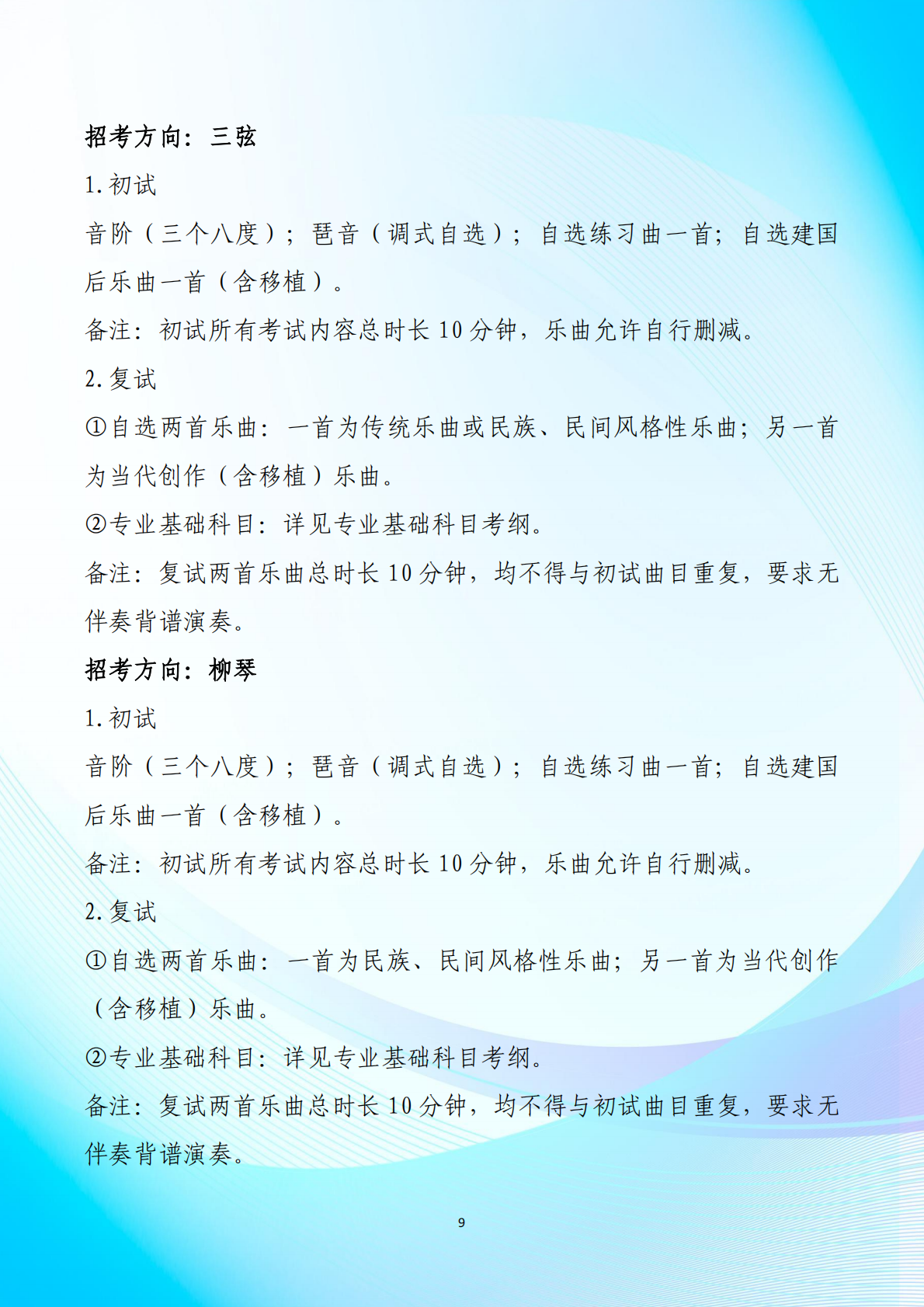 2026届的音乐学专业校考中,除了基础乐科仍保持在复试中考察以外,其他所有初试内容与25届复试内容对调。 26届不再区分钢琴主项及声乐主项,允许非钢琴的学生报考音乐教育专业,且初试需要选择加试任意乐器自弹自唱或者第二乐器演奏。复试增加歌曲清唱考项。 作曲取消电子音乐方向招生。 民乐演奏专业变动内容: 不再设规定曲目,考生可自选曲目。 部分乐器种类增加规定考试曲目。 具体考纲内容